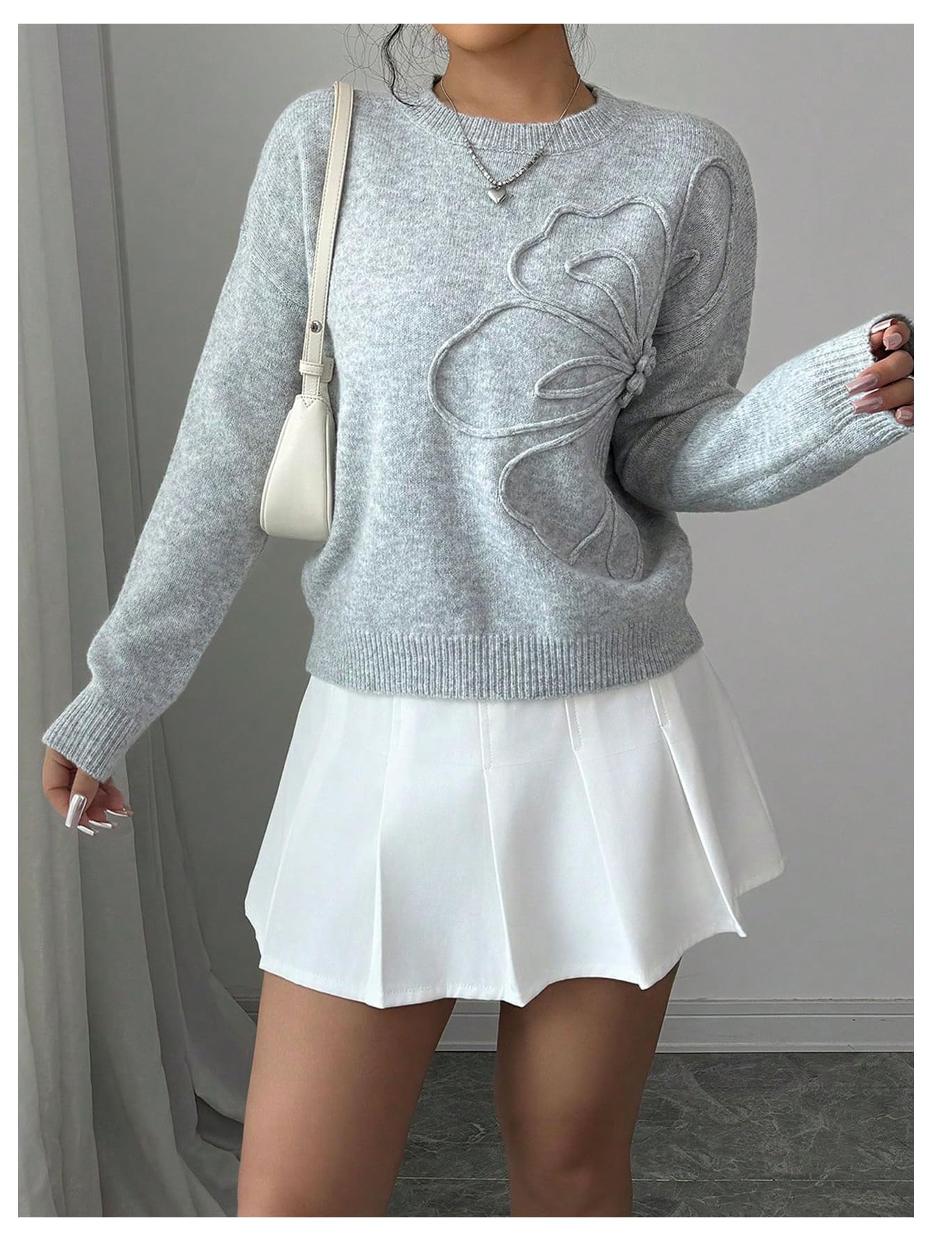 3D Flower Embroidery: The oversized 3D flower embroidery on the chest is as delicate as an artistic sculpture. Silk threads interweave to create the layered and soft texture of petals, breaking the monotony of the solid-color sweater. A touch of tenderness and romance emanates from the stitches, creating a sense of petals swaying as you walk, elevating the atmosphere.