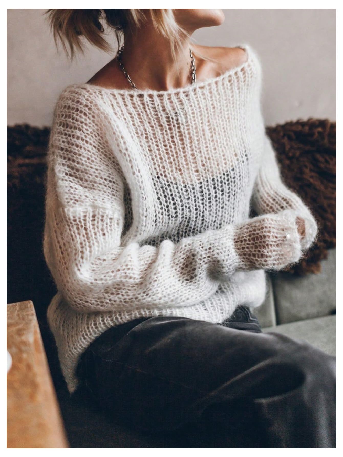 Made from a wool-blend knit with mohair, it feels as soft and fluffy as a cloud, comfortable against the skin without being snug (safe for sensitive skin, too). It’s incredibly warm without being bulky, perfect for wearing alone in spring and autumn, or layered under a winter sweater. It creates an airy feel, eliminating the dullness of traditional sweaters.