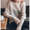 Off-the-shoulder Cut: The naturally falling off-the-shoulder design subtly reveals the delicate collarbone and décolletage, adding a touch of sexiness to the loose fit. The casual silhouette exudes a laid-back vibe reminiscent of a French film, sweet yet not overpowering, and alluring yet not glamorous.