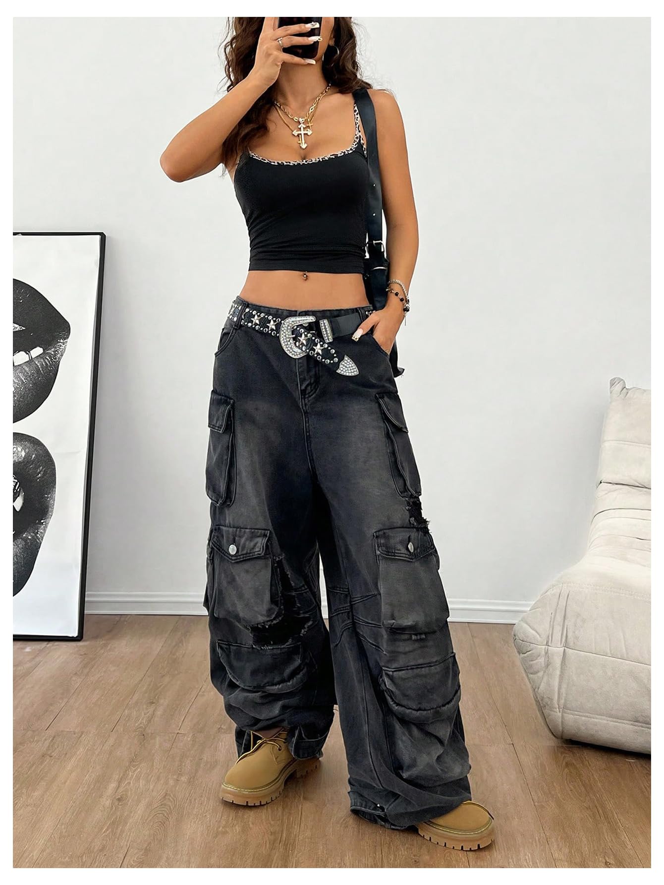Street chic: Pair this with ripped jeans and thick-soled Martin boots, and layer it with layered metal necklaces (like the cross necklace shown). This will instantly exude a cool and stylish aura while shopping at trendy stores or music festivals, making you the center of attention.