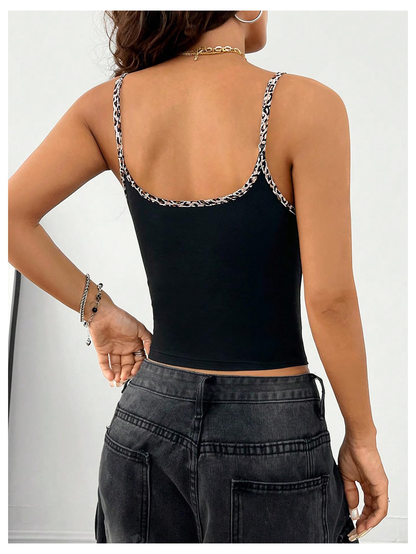 Metal Chain Straps: Eschewing ordinary fabric straps, these shoulder straps are replaced with textured metal chains. Their cool sheen instantly elevates a cool look, evoking a touch of streetwear jewelry. This essential black camisole imbues a rebellious spirit, instantly transforming a sweet girl into a sassy lady.