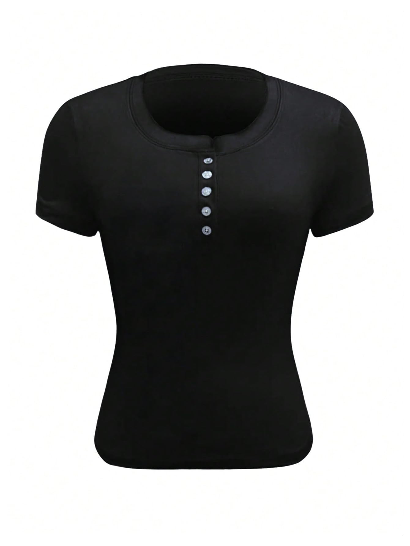 Henley Collar: A V-neck with metal buttons, it can be undone for a subtle, plunging V-neck look, revealing delicate collarbones and décolletage, or fastened for a minimalist look. This versatile piece offers two different looks, maximizing versatility and easily flattering the neckline, creating a slimmer, more sophisticated look.