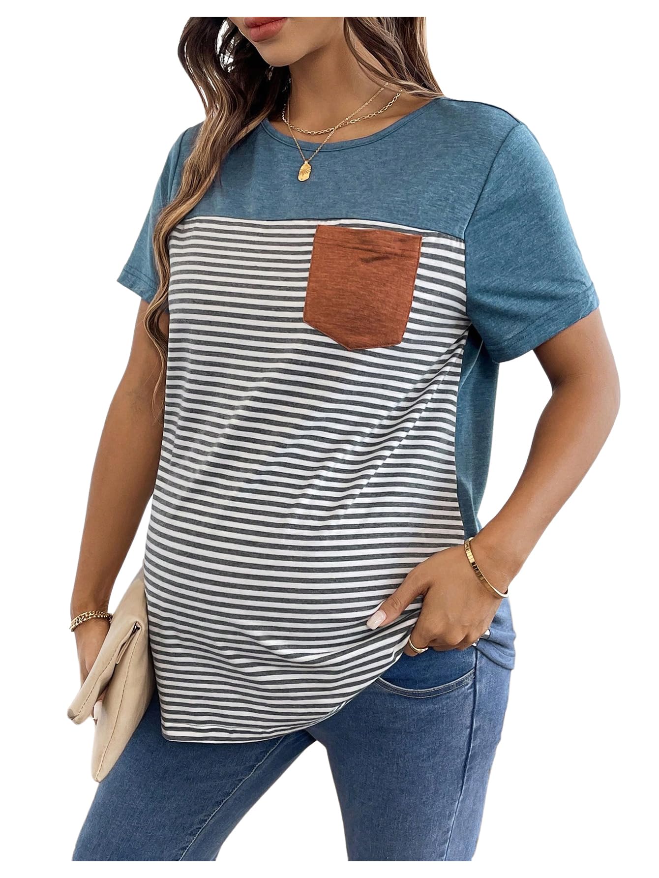Crew Neck + Short Sleeve Design: The classic crew neckline fits snugly around the neck, adapting to any shape or shoulder. The short sleeves are a perfect length for spring and summer, providing breathability and a refreshing feeling, alleviating heatstroke during pregnancy.