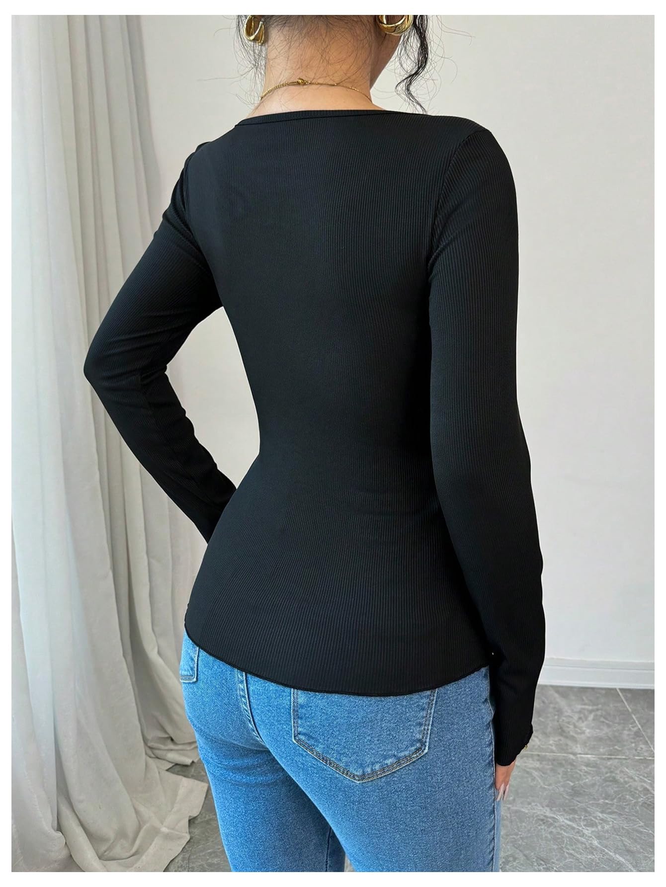 Made from a high-stretch, ribbed knit fabric, it’s soft and skin-friendly, fitting like a second skin. Its high stretch makes it slimming yet not restrictive, allowing you to stretch easily when raising your arms or bending at the waist. It also locks in your curves, preventing them from losing their shape over time. It’s suitable for both spring and autumn wear alone and winter layering.